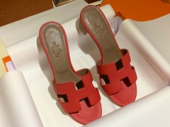 爱马.仕 经典款拖鞋 高端订制 独家品质 材质:掌纹皮 颜色:中国红 尺寸:平跟35~41 中跟35~41(跟高4cm) 偏小一码 码数不调换