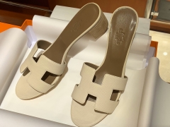 爱马.仕 经典款拖鞋 高端订制 独家品质 材质:掌纹皮 颜色:奶昔白 尺寸:平跟35~41 中跟35~41(跟高4cm) 偏小一码 码数不调换