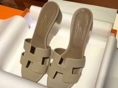爱马.仕 经典款拖鞋 高端订制 独家品质 材质:掌纹皮 颜色:风衣灰 尺寸:平跟35~41 中跟35~41(跟高4cm) 偏小一码 码数不调换