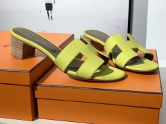 爱马.仕 经典款拖鞋 高端订制 独家品质 材质:掌纹皮 颜色:小鸡黄 尺寸:平跟35~41 中跟35~41(跟高4cm) 偏小一码 码数不调换