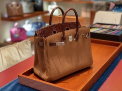 爱马仕女包 Birkin Touch 25cm 一只很高贵的蜜糖棕色拼皮Birkin Touch的出现迎合了很多爱美姐姐的审美