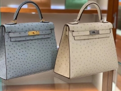 爱马仕女包批发 Kelly 28CM 南非k级皮 每个豆均匀完美 亚麻蓝 奶昔白 现货