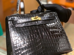 HERMES爱马仕 黑色 凯莉 Kelly 28 金扣银扣 现货 可接受订货 原厂进口鳄鱼皮