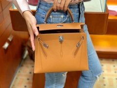 爱马仕女包批发 Kelly 25 Epsom 现货 3大金刚色之一金棕色银扣 这色质感特显好