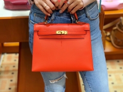 爱马仕香港官网 Kelly 25 Epsom 现货 色号S5 番茄红 比正红色多一点橘调 就是非常洋气的橘红色