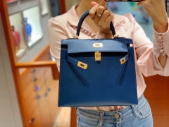 爱马仕香港官网 Kelly 25 Epsom 现货 宝石蓝金扣 这个蓝实物更美