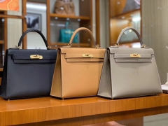 爱马仕香港官网 Kelly 25 28 Epsom 现货 黑色 金棕色 沥青灰