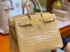 HERMES爱马仕 杏色 Birkin 25CM 金扣银扣 现货 可接受订货 原厂进口鳄鱼皮