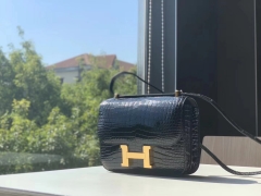 HERMES 康康 空姐包 Constance 鳄鱼 金扣 银扣 可接受定制 黑色