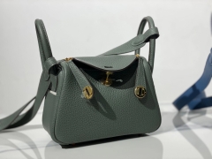 HERMES爱马仕 爱马仕官网 丛林绿 MINI琳迪包 Lindy 20cm 金扣 togo皮