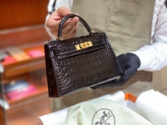 HERMES Kelly 二代鳄鱼 黑色 金扣银扣 可定制 纯手工