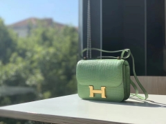 HERMES 康康 空姐包 Constance 鳄鱼 金扣 银扣 可接受定制 牛油果绿