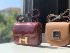 HERMES 康康 空姐包 Constance 鳄鱼 金扣 银扣 可接受定制 酒红