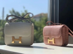 HERMES 康康 空姐包 Constance 鳄鱼 金扣 银扣 可接受定制 大象灰