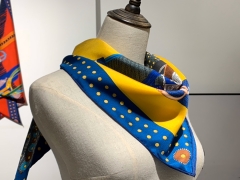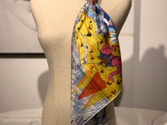 春季丝巾新品《佐阿夫团与龙》黄色 90x90cm 100% 蚕丝面料 高精度纺织