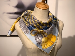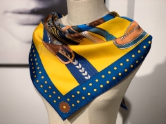 HMS 真丝方巾 《高贵的马鞍》 黄色 足足18姆米 100%斜纹真丝 90*90cm 原版包装