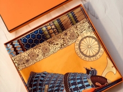 HMS 真丝方巾 《武士的服饰》黄色 足足18姆米 100%斜纹真丝 90*90cm 原版包装