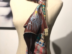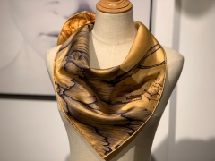 2020春夏新款 《羽饰庆典》 咖色 手工卷边斜纹真丝方巾(100%桑蚕丝) 90*90cm