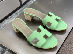 H 纯手工拖鞋 专柜最新颜色 牛油果绿 高端订制 独家品质 看图说话 质量赞到没朋友 完美 Size:平底35~41 高跟35~41(跟高4cm) 颜色:牛油果