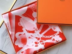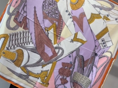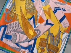HEREMS《Check In》 橙色 90×90cm 100%真丝斜纹绸 18mm大克重