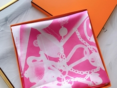 HEREMS《Check In》 玫红色 90×90cm 100%真丝斜纹绸 18mm大克重