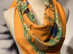 春季丝巾新品《佐阿夫团与龙》橙色 90x90cm 100% 蚕丝面料 高精度纺织