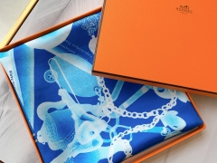 HEREMS《Check In》 蓝色 90×90cm 100%真丝斜纹绸 18mm大克重