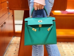 爱马仕香港官网 Kelly 25 Epsom 现货 色号Z6 孔雀绿金扣 孔雀绿就得金扣好看