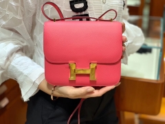 爱马仕官网 Constance 18 cm Epsom 8W Rose Azalee 唇膏粉 银扣 现货
