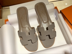 爱马.仕 经典款拖鞋 高端订制 独家品质 材质:掌纹皮 颜色:大象灰 尺寸:平跟35~41 中跟35~41(跟高4cm) 偏小一码 码数不调换