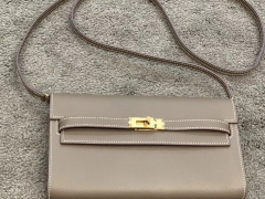 HERMES Kelly Classique To Go 长肩带钱包 Epsom皮 大象灰 现货