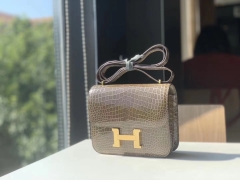 HERMES 康康 空姐包 Constance 鳄鱼 金扣 银扣 可接受定制 大象灰