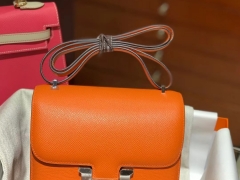 HERMES 空姐包 Constance 手掌纹 93橙色Orange 银扣