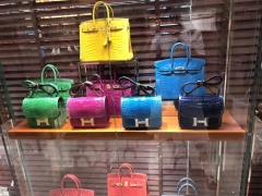 HERMES 爱马仕 Constance 空姐包 18cm 24cm 鳄鱼皮 竹子绿 桃红色 水妖蓝 宝石蓝