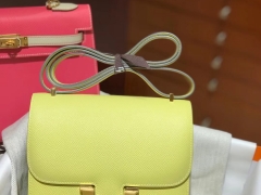 HERMES 空姐包 Constance 手掌纹 9H Soleil 柠檬黄 金扣