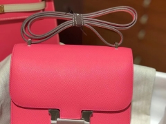 爱马仕 空姐包 Constance 手掌纹 银扣 8w Rose Azalea 新唇膏粉