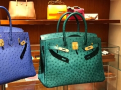 HERMES 爱马仕 铂金包 Birkin 30cm 鸵鸟皮 孔雀绿 Z6 金银扣都可以定制