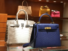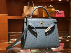 HERMES 爱马仕 凯莉包 Kelly 25cm 28cm 鸵鸟皮 暴风蓝 Y7 Blue orage 金银扣都可以定制