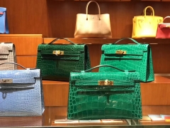 HERMES 爱马仕 MiniKelly 2 翡翠绿/小鸡黄/杏色/橄榄绿/水妖蓝/电光蓝/锡器灰 金银扣
