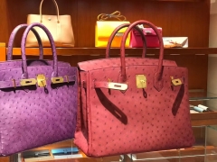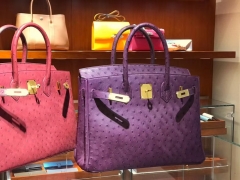 HERMES 爱马仕 铂金包 Birkin 30cm 鸵鸟皮 海葵紫 P9 Anemone 金银扣都可以定制