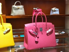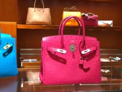 HERMES 爱马仕 铂金包 Birkin 30cm 鸵鸟皮 桃红 E5 金银扣都可以定制