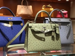 HERMES 爱马仕 凯莉包 Kelly 25cm 28cm 鸵鸟皮 玛尔塔兰 金银扣 配全套专柜原版包装