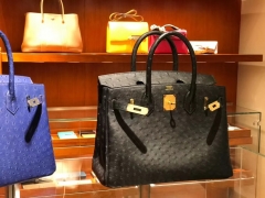 HERMES 爱马仕 铂金包 Birkin 30cm 鸵鸟皮 黑色 89 Nior 金银扣都可以定制
