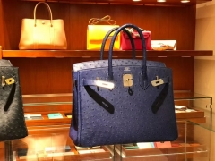 HERMES 爱马仕 铂金包 Birkin 30cm 鸵鸟皮 水妖蓝 T7 Blue Hydra金 银扣都可以定制