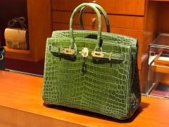 HERMES 爱马仕 Birkin 25CM 金扣 6H Veronese 橄榄绿 进口鳄鱼皮