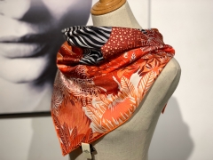 2020年春季新款斜纹真丝方巾 《林中斑马》 90*90cm 红色 18姆米