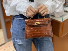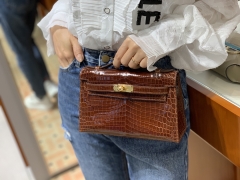 HERMES 爱马仕女包批发 Mini Kelly 22cm 蜜糖棕 现货 原厂鳄鱼皮
