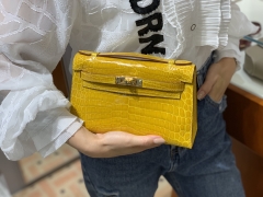 HERMES 爱马仕女包批发 Mini Kelly 22cm 琥珀黄 现货 原厂鳄鱼皮