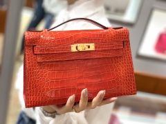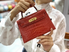 HERMES 爱马仕女包批发 Mini Kelly 22cm 法拉利红 现货 原厂鳄鱼皮