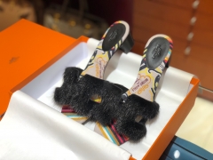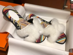爱马.仕 新款水貂毛拖鞋 水貂毛鞋面 帆布款鞋垫脚 35~41(正常码数)